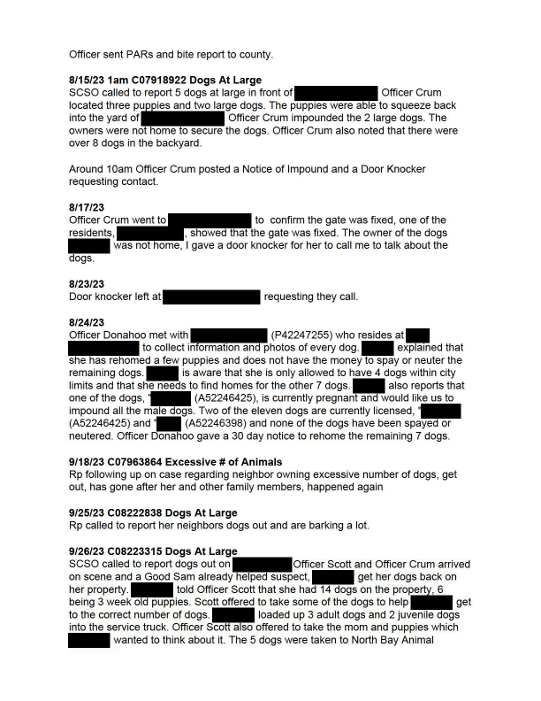 I feel that petaluma police were bias as they and Mark are in the same line of work and its like a club member pack. I feel that my disabilities made me an easy target and that were used against me to get me to allow mark to take my dogs,