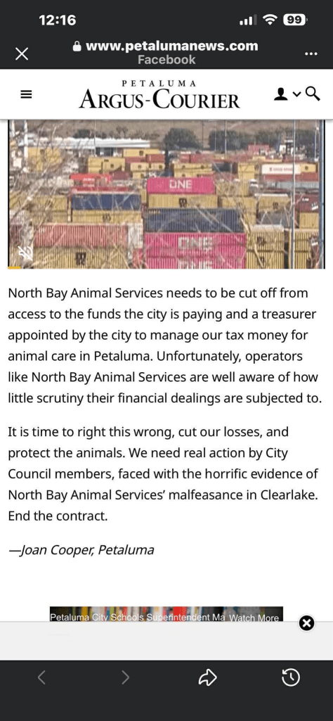 - North Bay Animal Services (NBAS) – a private contractor performing animal control and sheltering services on behalf of the Town of Windsor.